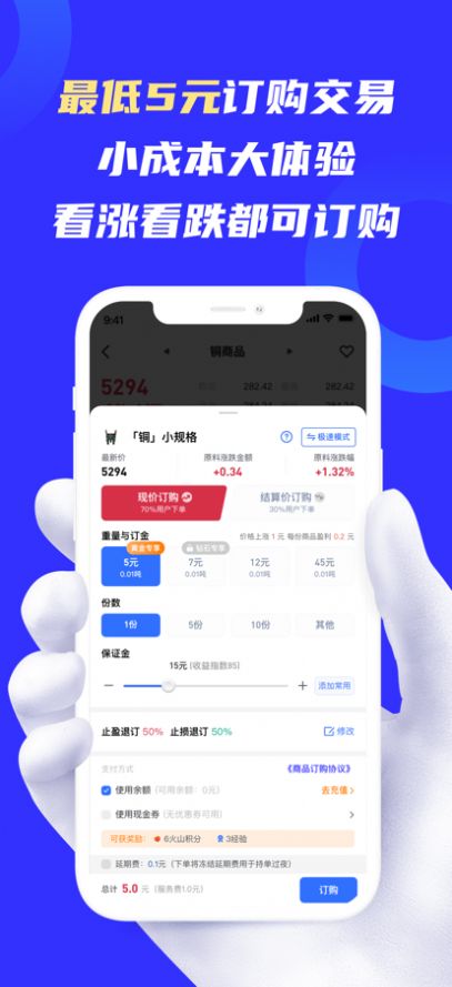 1、低门槛,最低5元起交易,适合小白的订购交易软件。